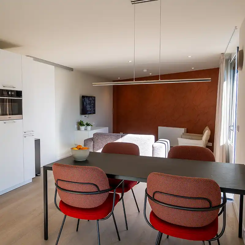 • Wohnzimmer mit Schiebetüren zur Terrasse